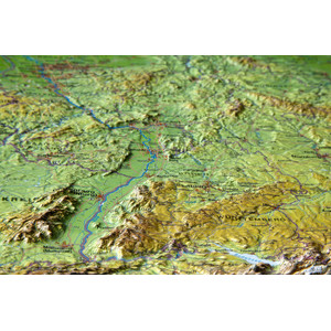 Orthophotoreliefs are 3D relief maps printed with aerial photographs (orthophotos). These can mainly be used in scale ranges between 1:10,000 and 1:500,000. Relief shading and coloured elevation layers make the relief particularly clear on these maps.
