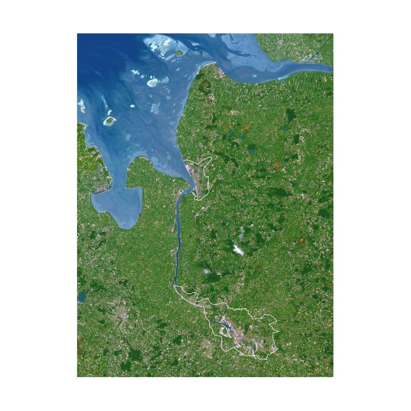 All the products are processed in natural colours (such as water blue, snow white, vegetation green or yellow). The data are georeferenced and orthorectified. An effect of this special use of colours is that geographic details can easily be identified (highways, huge airports or ports, rivers, metropoles on the posters