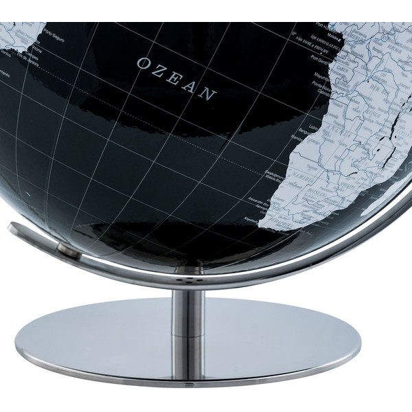 Meridian and base in high-gloss chrome, sphere of acrylic glass. Map image: politcal (illuminted and unilluminated).