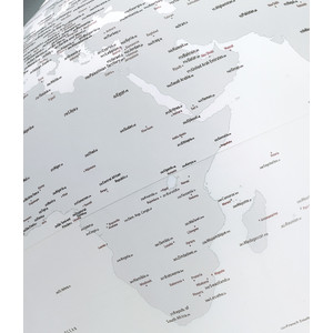 It is the first illuminated model in the Full Circle series and features exceptional and innovative cartography: when unlit, the seas and oceans appear in white, while the continents are grey; when the lighting is switched on, the colours suddenly change to a dark shade for all water surfaces and a light shade for the continents.