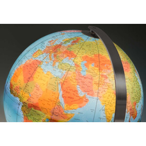 The globe consists of a traditionally hand-laminated sphere with a diameter of 37 centimetres and a total height of 42 centimetres. The globe sphere is set in an elegant meridian made of brushed stainless steel and rests on a stainless steel base.
