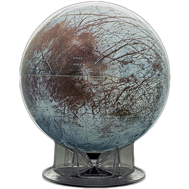 Explore what lies beneath the icy shell of Europa, Jupiter’s fascinating satellite. Develop by the staff at Astronomy magazine, this injection-molded 12” desktop globe was produced using images from Voyager 1, Voyager 2 and the Galileo spacecraft. The richly detailed Europa globe shows 110 features identified and labeled, including Arran Chaos, Conamara Chaos, Narbeth Chaos, Osin Crater, Cilix Crater and Balor Crater and many others.