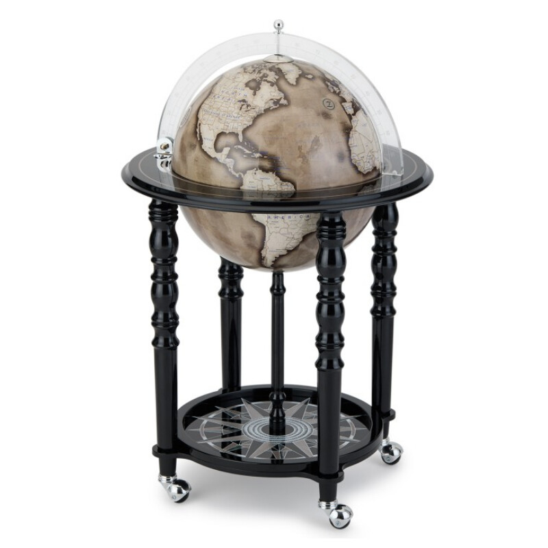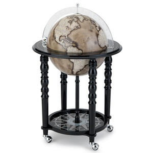 The base of the globe consists of 4 turned beech wood legs with a black lacquer finish: this gives the globe an elegant and sober look. The special colour scheme and the acrylic crystal meridian are the strengths of Elegance: the combination creates a sense of seriousness that transforms your home into a place of reflection and study.
