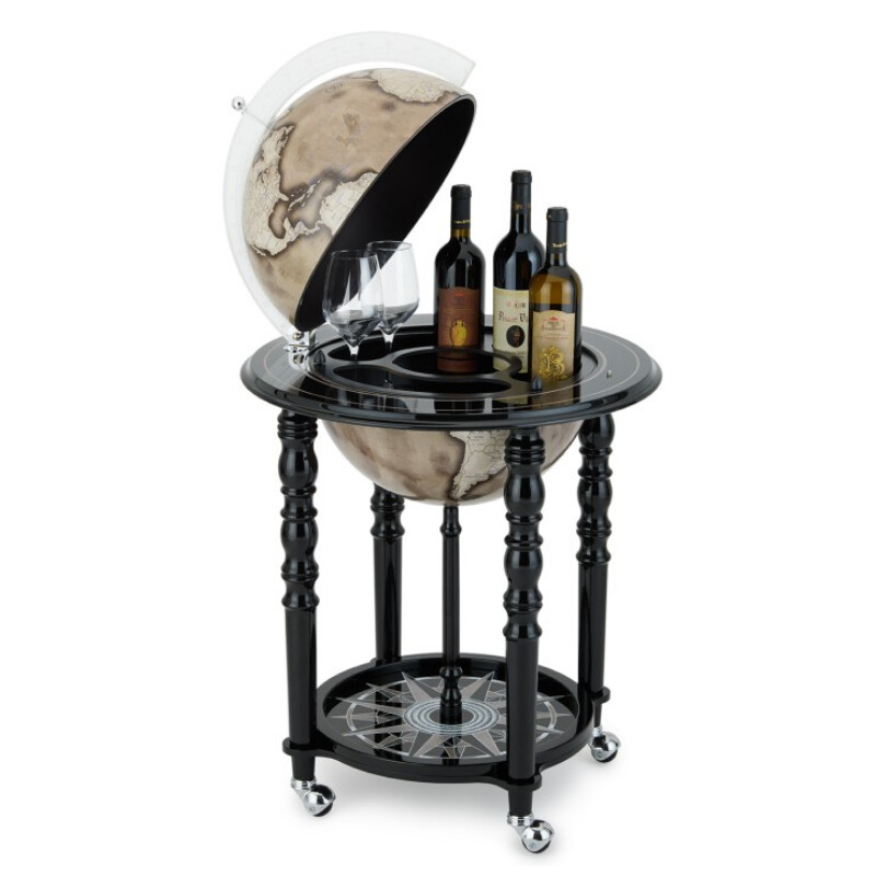 The lower shelf is carefully decorated with a modern compass rose that blends perfectly with the rest of the globe. Surprise your guests with this modern bar globe!