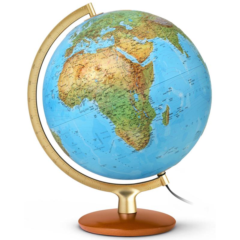 The mechanically produced 3D illuminated globes from the Räthgloben 1917 Verlag are one of a kind. In addition to the illuminated double image, these also provide a fascinating 3D surface, whose tactile structure illustrates the height topography of the earth. The mountains are, however, strongly exaggerated, as even Mount Everest would only be as large as a grain of sand on the globe at the proper scale and thus barely able to be felt.